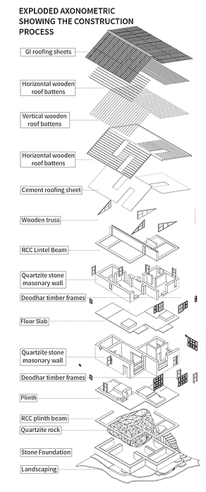 This homestay resort project serves as a powerful example of sustainable and context-driven architecture. The initial project brief was to design a retreat using eco-friendly materials, with an initial focus on mud construction. However, a site visit revealed an abundance of naturally occurring quartzite rocks, prompting a pivotal design change to a stone-based architectural approach. This decision not only honors the site's geology but also minimizes the environmental footprint by utilizing locally sourced, non-processed materials.