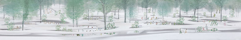 The central feature of the design is a scribbled doodling-like slab that stretches across the site, harmoniously blending with the surrounding terrain. The slab’s curves form diverse spaces, some of which are in direct contact with the ground, while others are elevated to allow adult passage. The interior spaces are enclosed with glass, allowing for transparency and visual connection, while a combination of natural and man-made elements, such as trees and plants, contribute to the captivating environment.